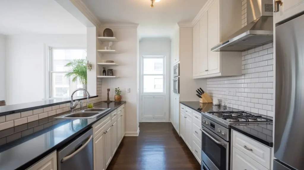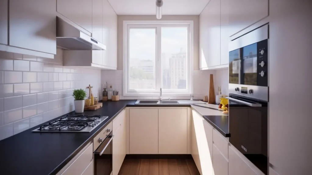 13. Black Counters in a Small, Bright Kitchen Layout