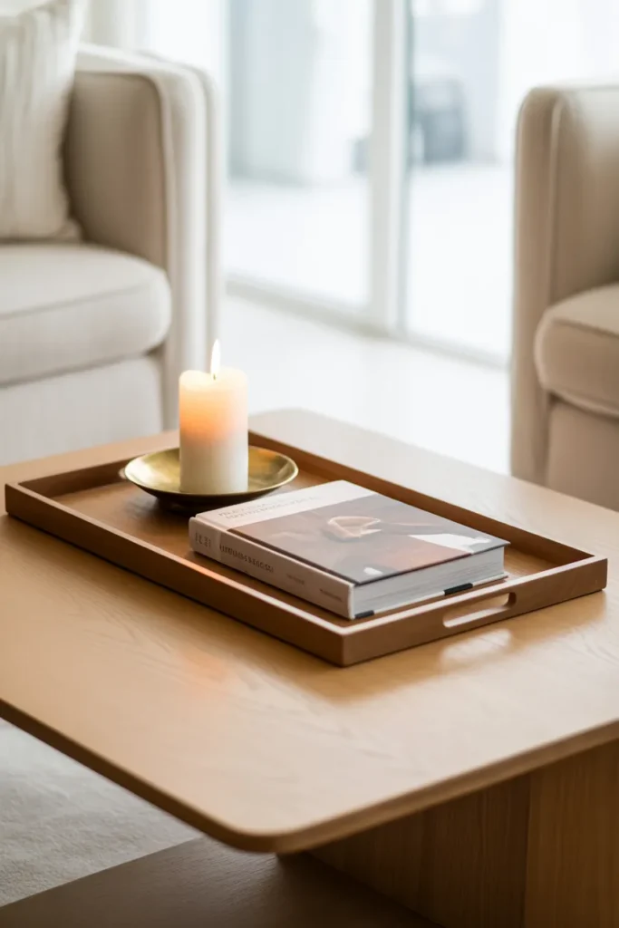 Instead, stick to a few pieces that actually stand out. A tray, a candle, maybe one book. Give each item space so it feels curated instead of crowded.