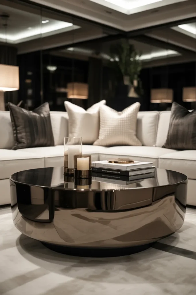 Picture a slim gold lamp sitting on a side table next to your sofa, or a small tray on your coffee table reflecting warm evening light. These tiny details start to build a layered, curated look without you even realizing it.