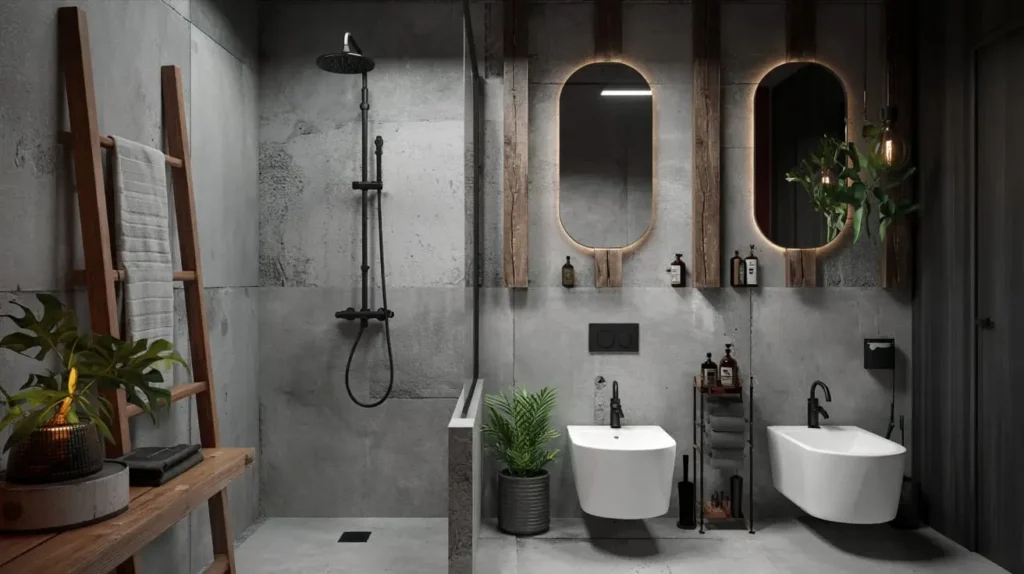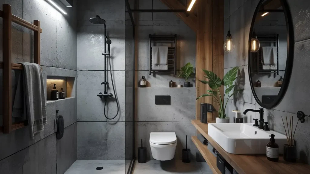 - Grid Shower Doors: This is crucial. A glass shower screen with a black grid pattern (Crittall style) is the ultimate urban statement. It looks like an old factory window.