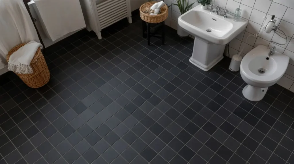 2. Matte Black Bathroom Floor Tile