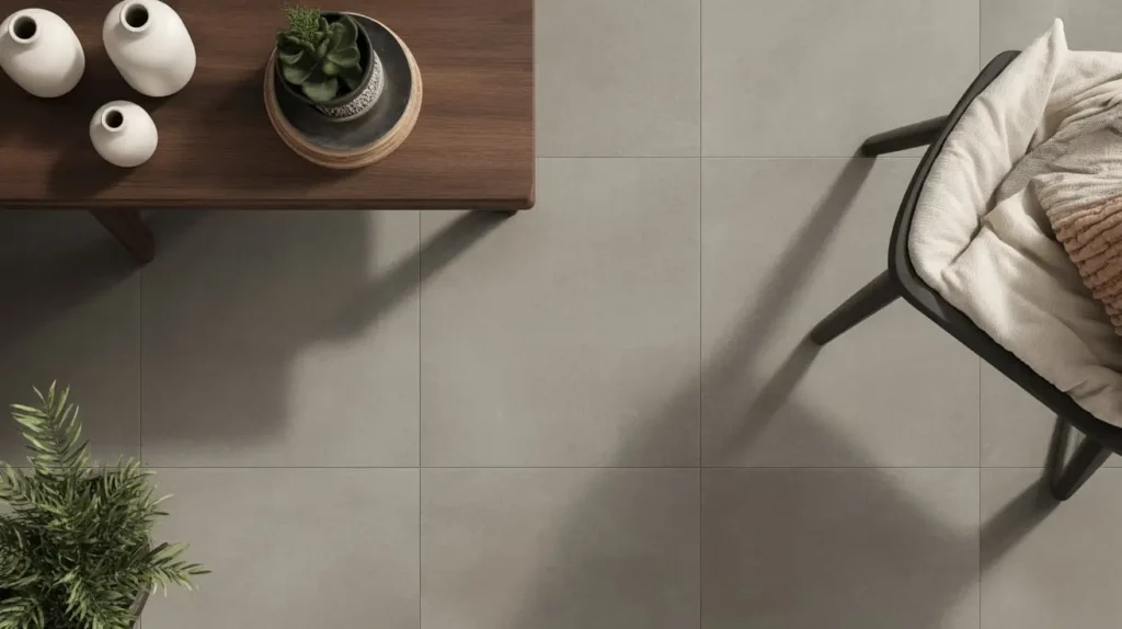 • Choose a Large Format: This look is most effective when you use large-format tiles (like 24×24 or 24×48 inches). This minimizes grout lines and creates a more seamless, expansive look that better mimics a real poured concrete floor. Tiny concrete-look tiles just don’t have the same impact.