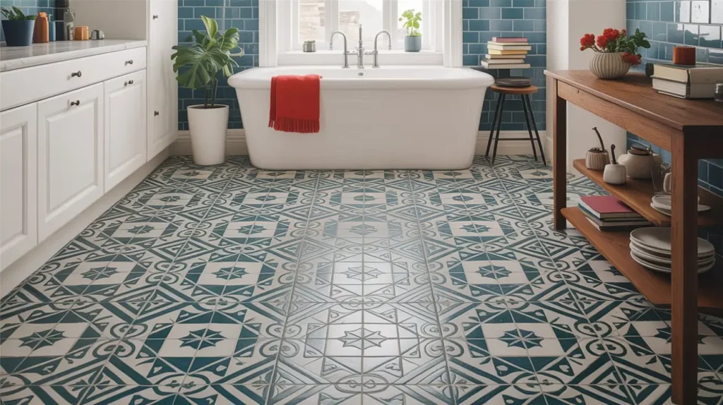 Alright, maximalists, this one’s for you. If the idea of a beige floor puts you to sleep, it’s time to embrace the power of pattern. We’re talking about encaustic-look tiles, Moroccan-inspired designs, and bold geometric prints that turn your floor into a work of art.