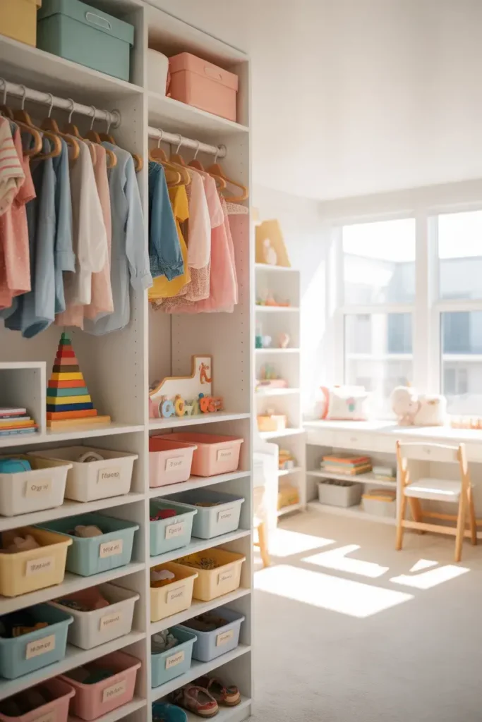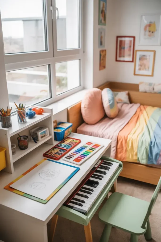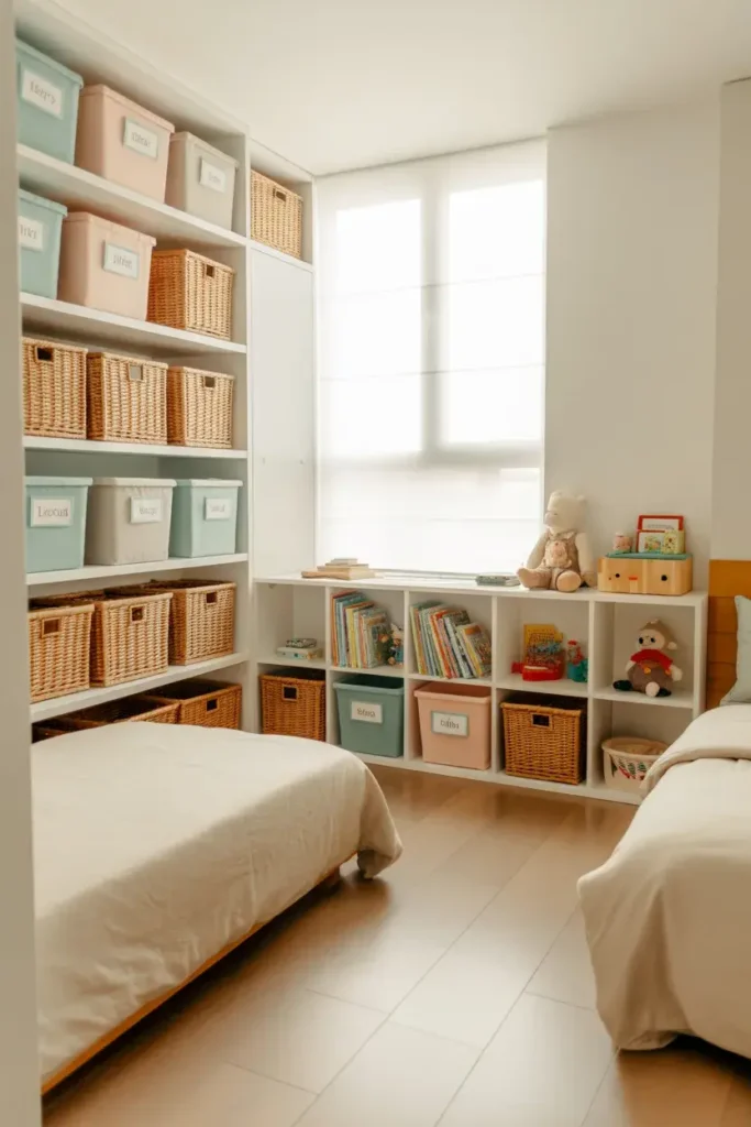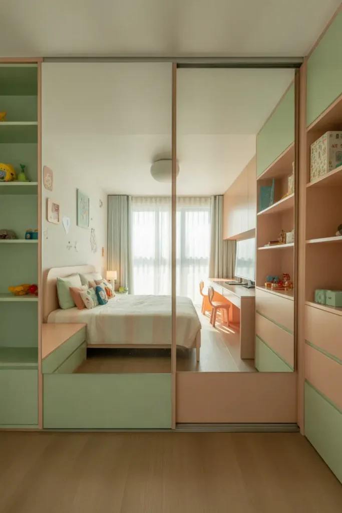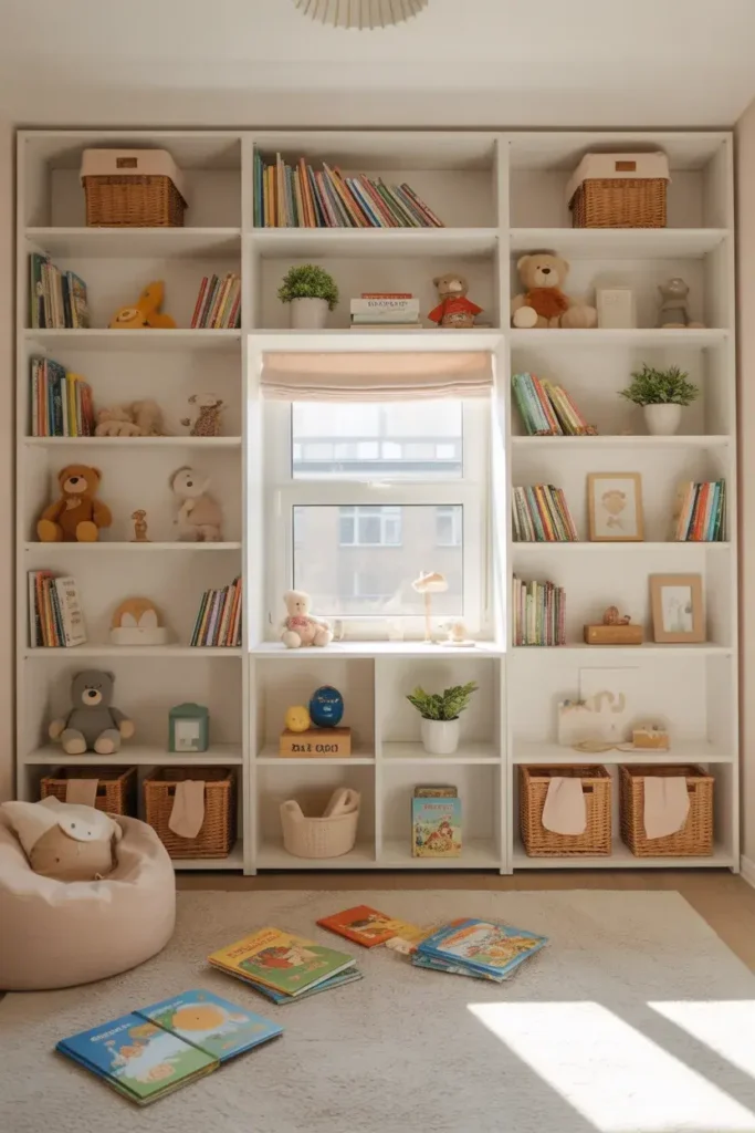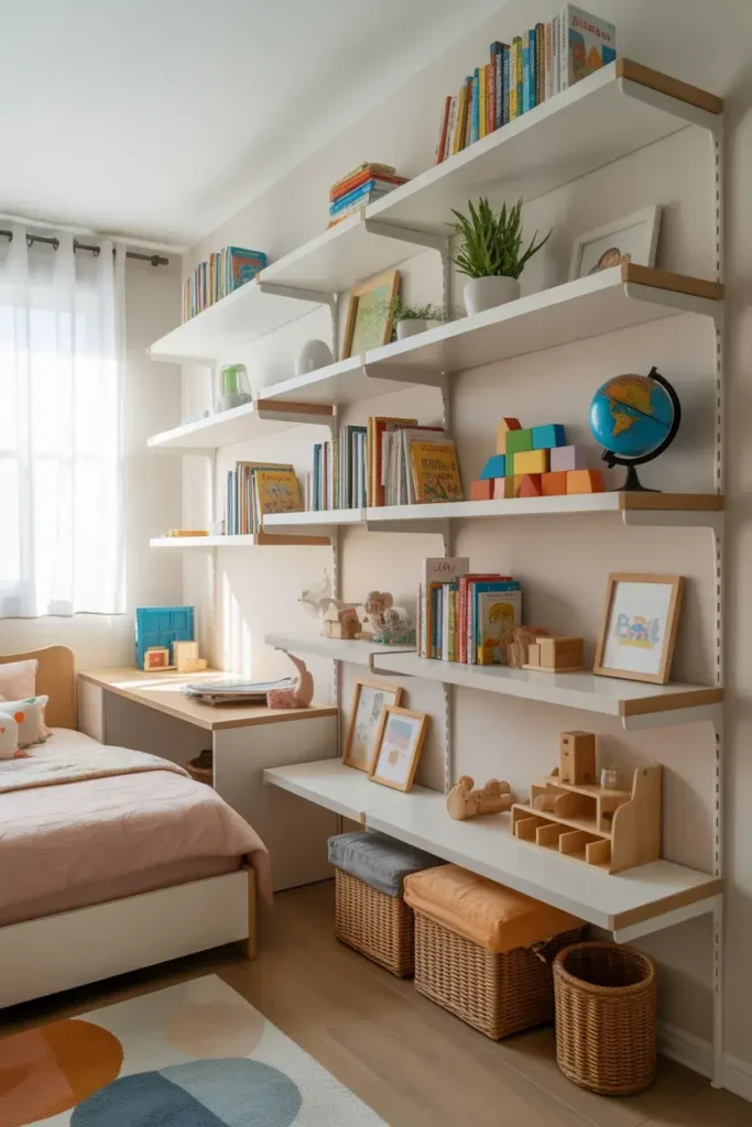 Instead of hiding everything, let them display things they love—books, toys, or collectibles.