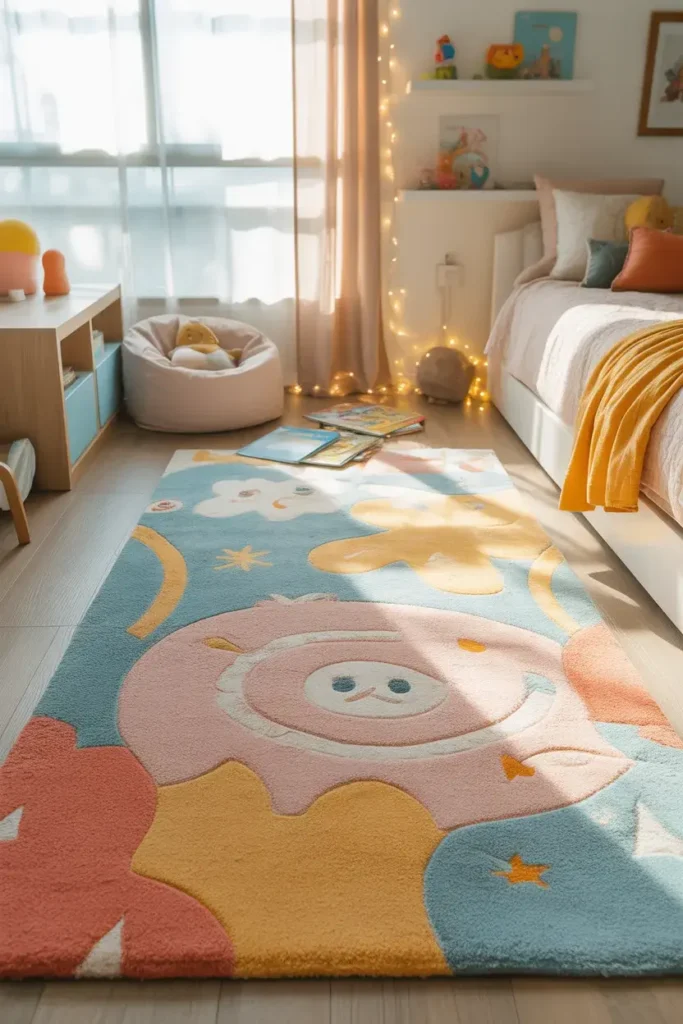 7. Fun Rug That Adds Softness and Color