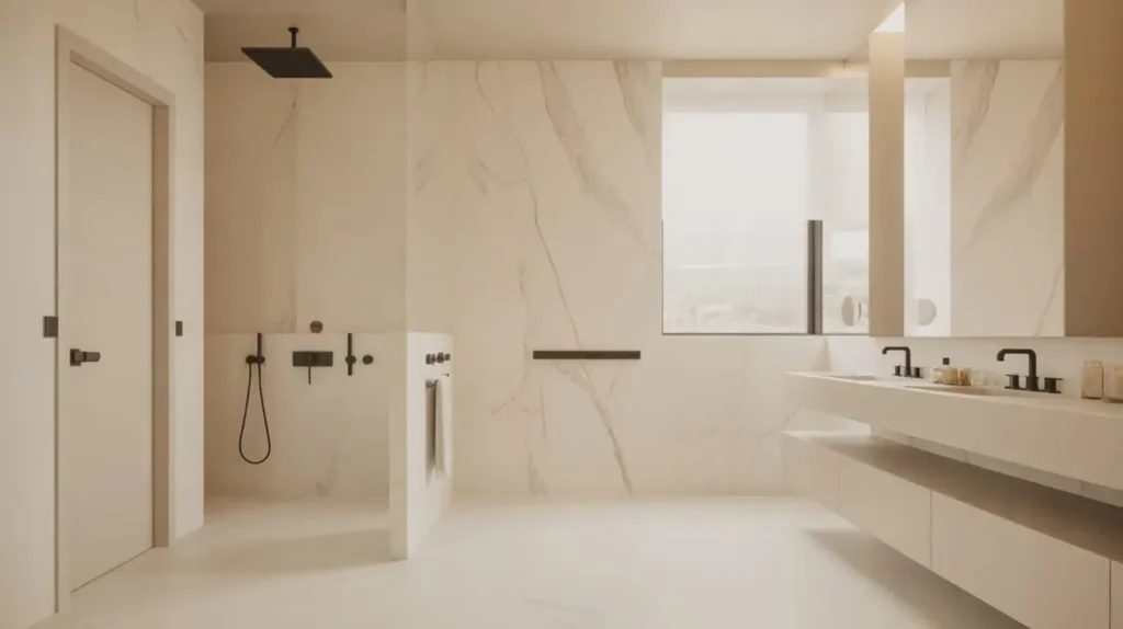 I installed large-format white marble tiles with heavy black veining in my guest bath last year, and it completely transformed the room. It went from a cramped closet to a luxury box. IMO, real marble is a pain to maintain (who has time to seal stone every six months?), so I recommend looking at high-end porcelain lookalikes. They cost a fraction of the price and you can clean them with basically anything.