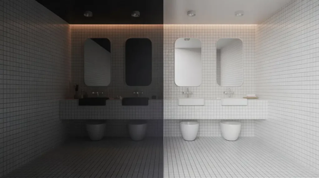 - Lighting: Good lighting is crucial to prevent the space from feeling like a cave, especially if you go heavy on the black. A backlit mirror is a fantastic modern touch.