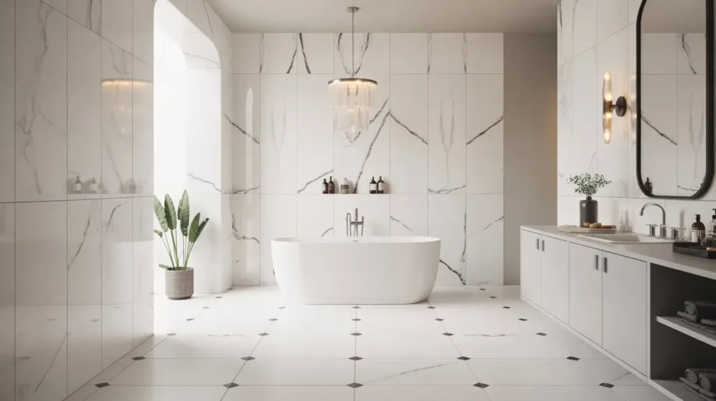 My personal favorite application is behind the vanity. It creates an incredible backdrop for a beautiful mirror and chic lighting fixtures. Plus, since you’re only tiling one wall, it can be a more budget-friendly way to incorporate a high-end material like marble. You get all the impact without the eye-watering price tag for an entire room.