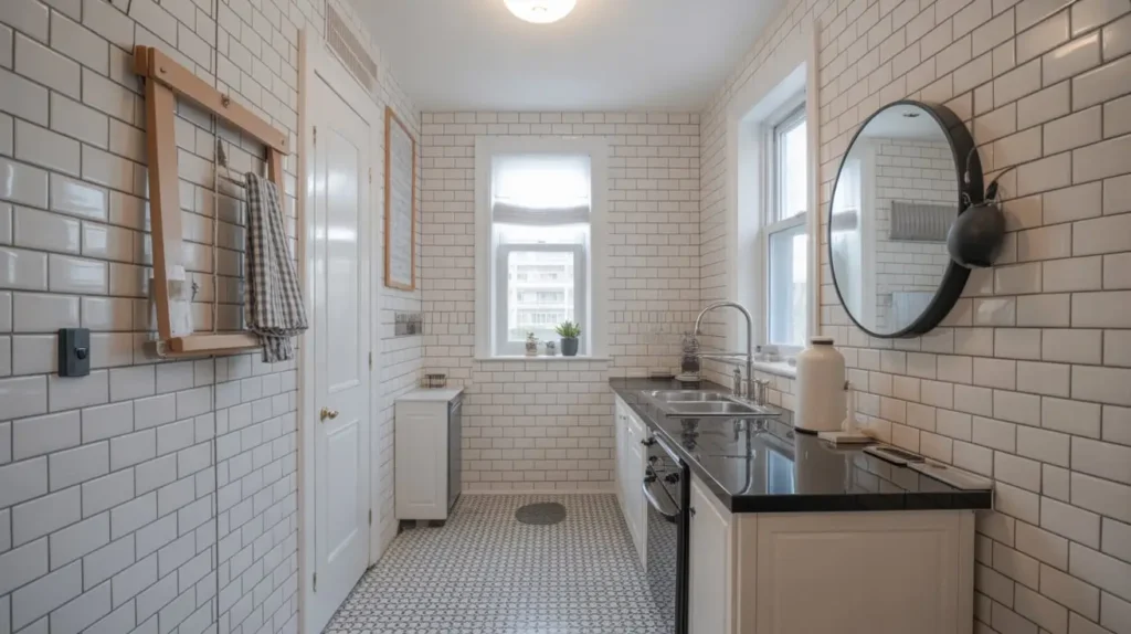 - Stripes: For the truly bold, you can create vertical stripes of black and white tile. This is a very graphic, high-energy look that works best on a single feature wall so it doesn’t become dizzying.