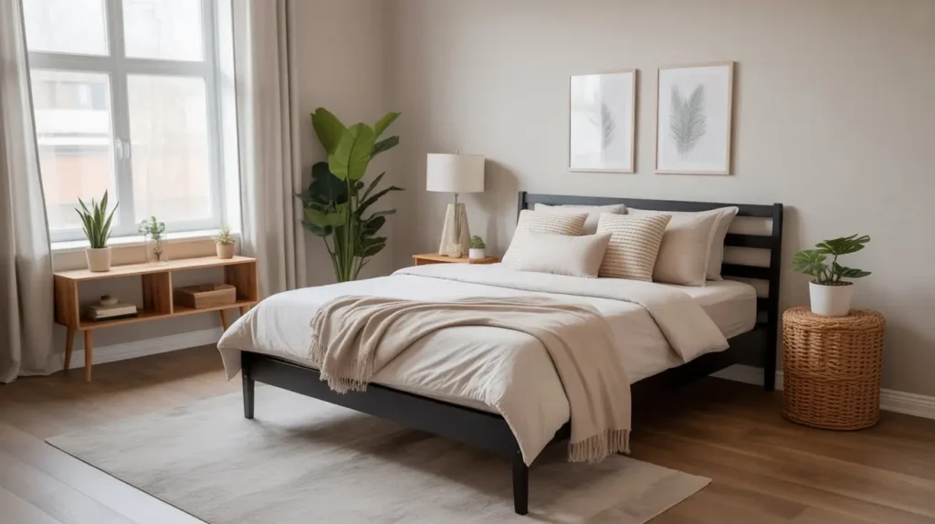 Let’s talk reality for a second. Not everyone has an unlimited decorating budget, and that’s totally fine. You can absolutely style a black bed frame bedroom that looks expensive without spending a fortune.