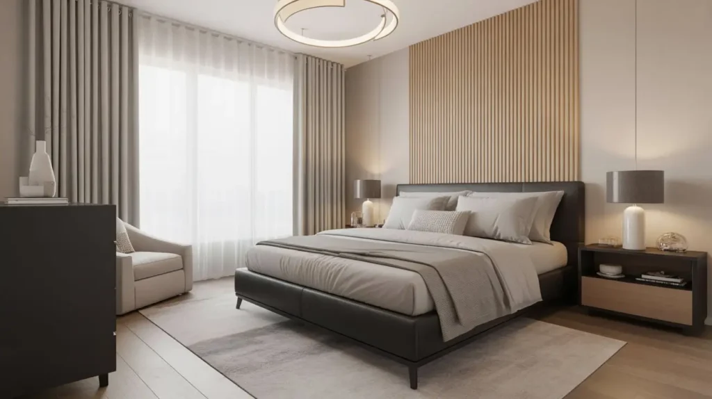 - Wood slat walls for warmth and texture