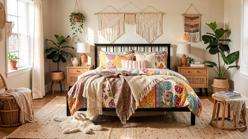 8. Boho Bedroom with Black Bed Frame Style