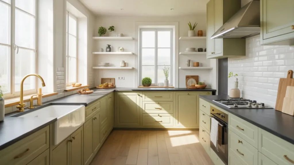 Ready for a color that’s having a major moment but also feels completely timeless? Meet sage green. Pairing sage green cabinets with black countertops creates a kitchen that is serene, earthy, and incredibly chic.