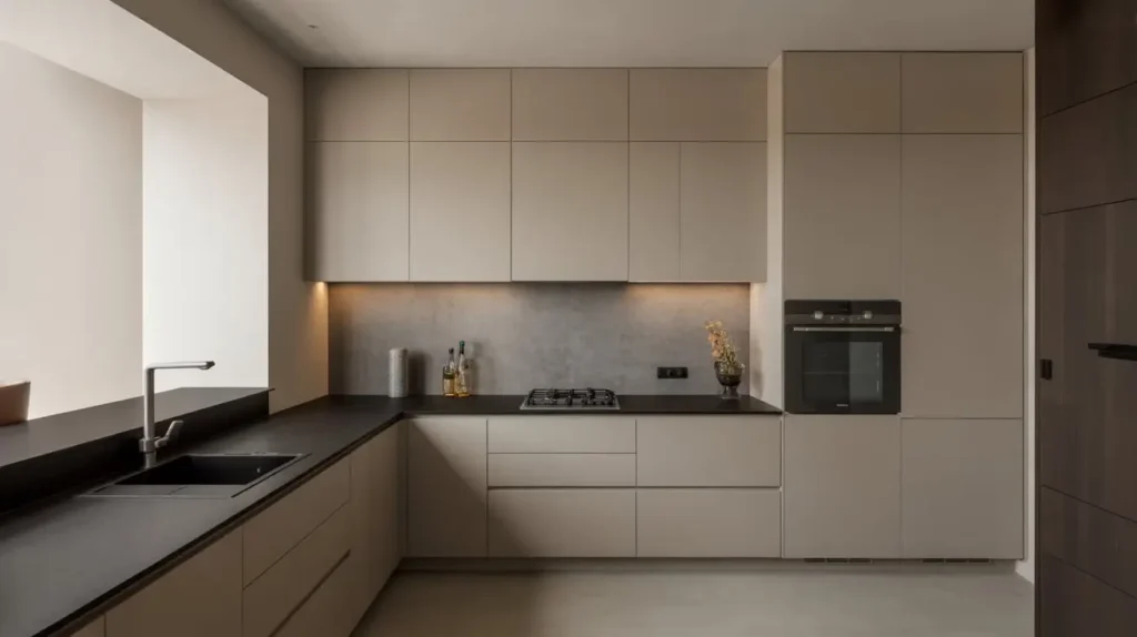 • Keep it Simple: Opt for flat-panel cabinets and minimal, integrated hardware for a clean, uncluttered look.