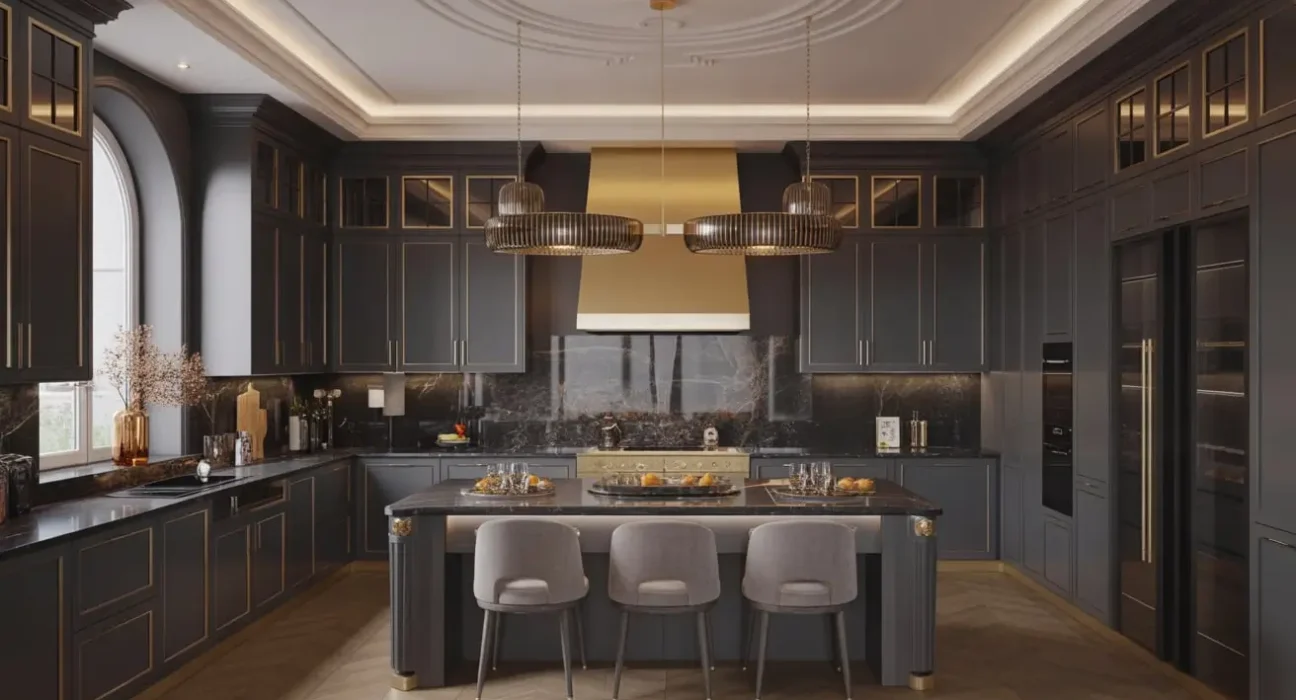 14. Charcoal and Gold Luxury Kitchen Scheme