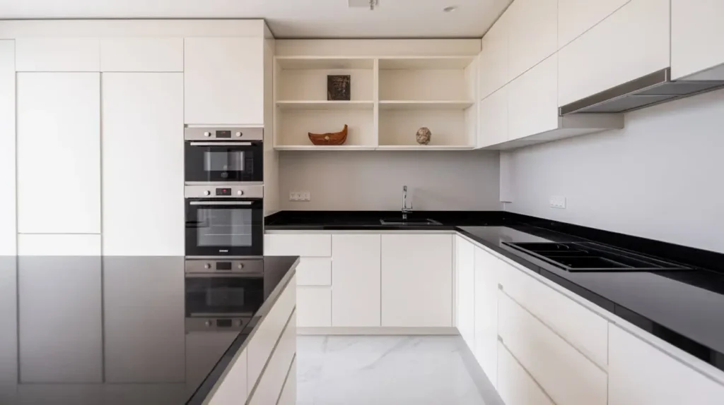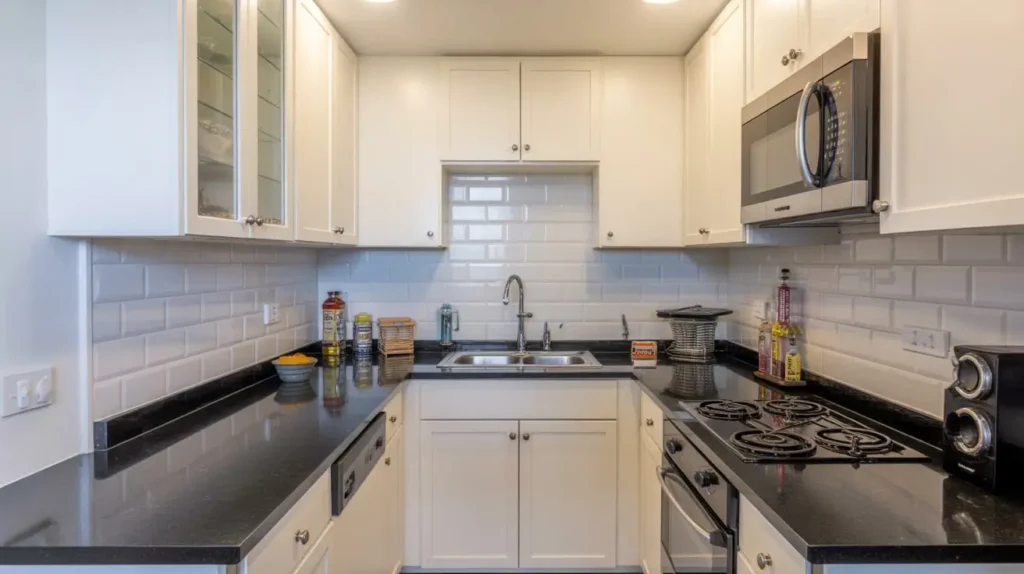 This might sound counterintuitive. Black countertops in a small kitchen? Won’t that make it feel even smaller? The surprising answer is no—if you do it right. Used strategically, black granite can actually create an illusion of depth and sophistication in a compact space.