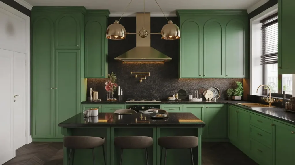If you’re a fan of rich, jewel-toned colors and want a kitchen that feels unique and deeply personal, this one’s for you. The combination of black granite, deep green cabinets, and warm brass or gold hardware is a design trifecta that is simply breathtaking. It’s sophisticated, a little bit vintage, and oozes personality.