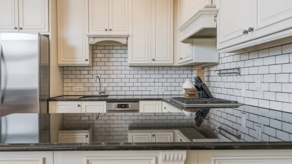 - The Classic: A 3×6 white subway tile with white grout is the most classic and popular choice. Paired with polished black granite, it creates a clean, high-contrast look that feels both vintage and current.