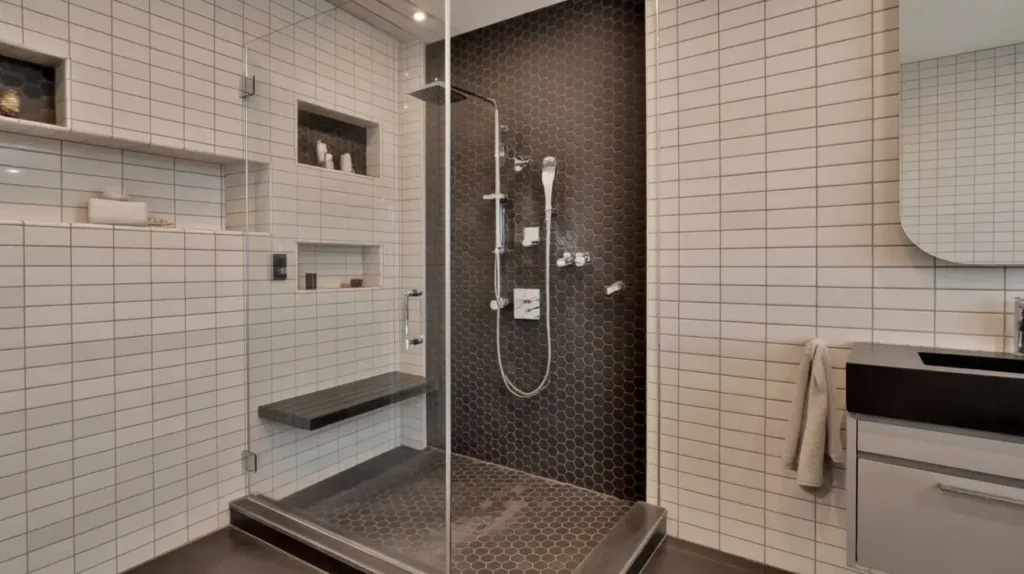One of my favorite applications is a fully tiled shower enclosure. Tiling the floor and all three walls of a walk-in shower with black hex tiles creates a cocoon-like effect that feels incredibly high-end and moody. If you have a shower niche for your shampoo bottles, tiling the back of it with the same hex tiles is a great touch for continuity.