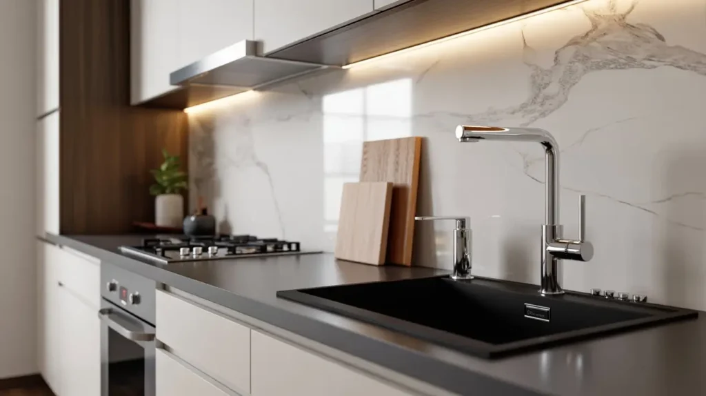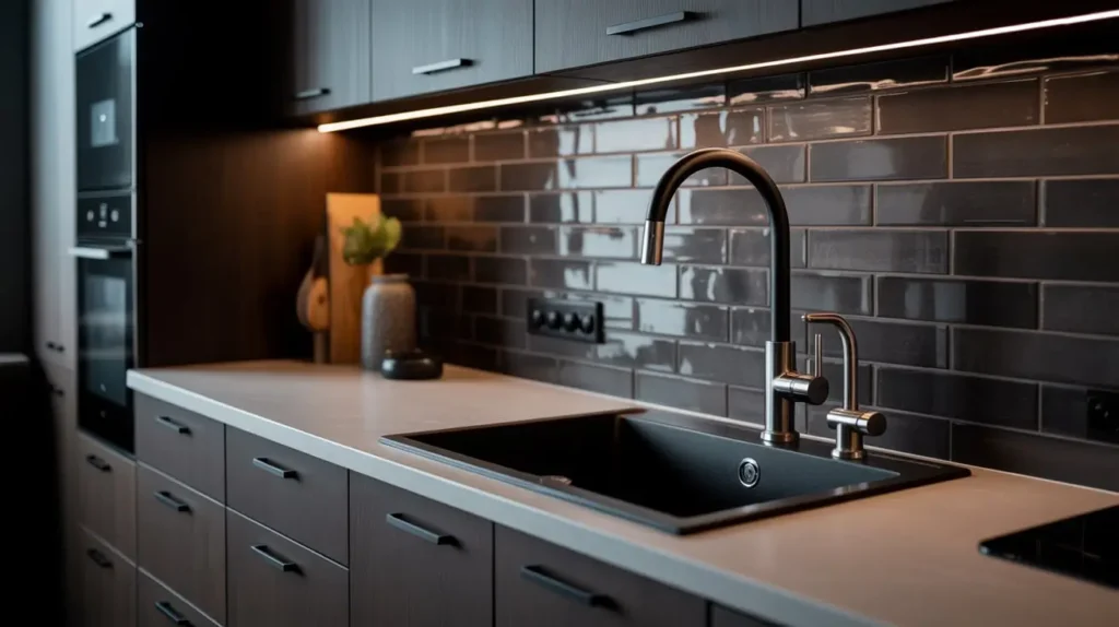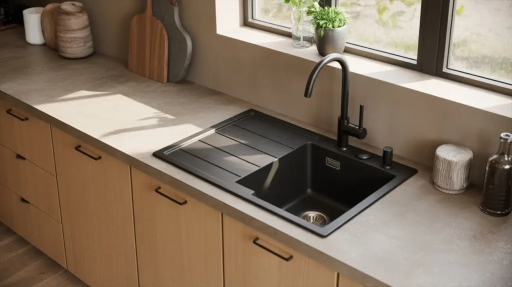 4. The “Less is More” Vibe: Sleek Black Sink in a Minimalist Kitchen