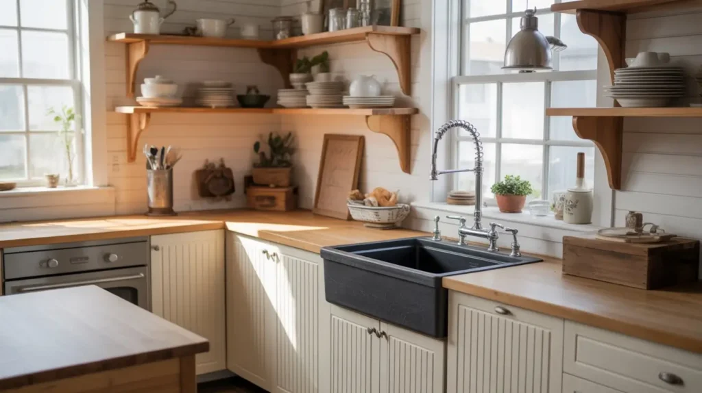 For the sink material, you have great options. A black fireclay or granite composite sink will give you that authentic, sturdy farmhouse feel with incredible durability.