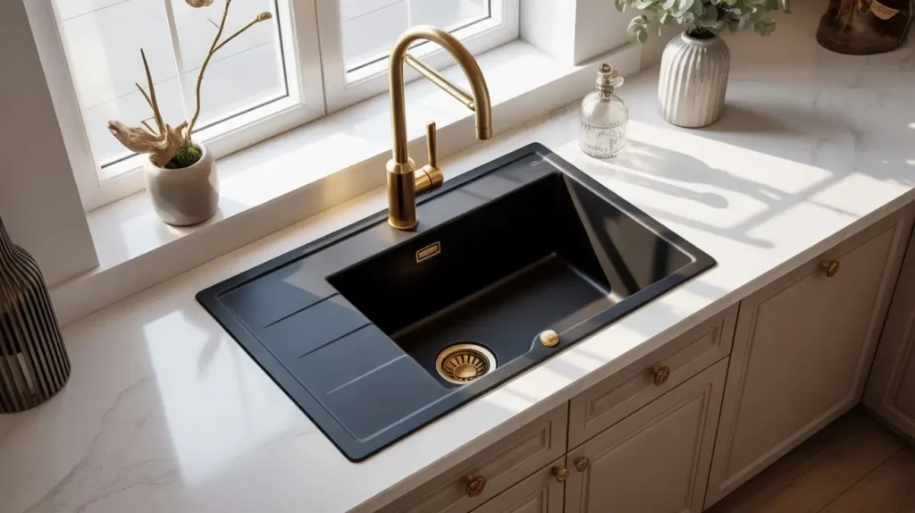 But you… you’re thinking about going rogue. You’re considering a black kitchen sink. And a little voice in your head is whispering, “Do it. Be dramatic.” I’m here to tell you that the little voice is absolutely right. When I was designing my own kitchen, the black sink debate was real. Would it be too much? Would it show every single water spot? Would my traditionalist mother-in-law faint? (Spoiler: yes, no, and almost.)
