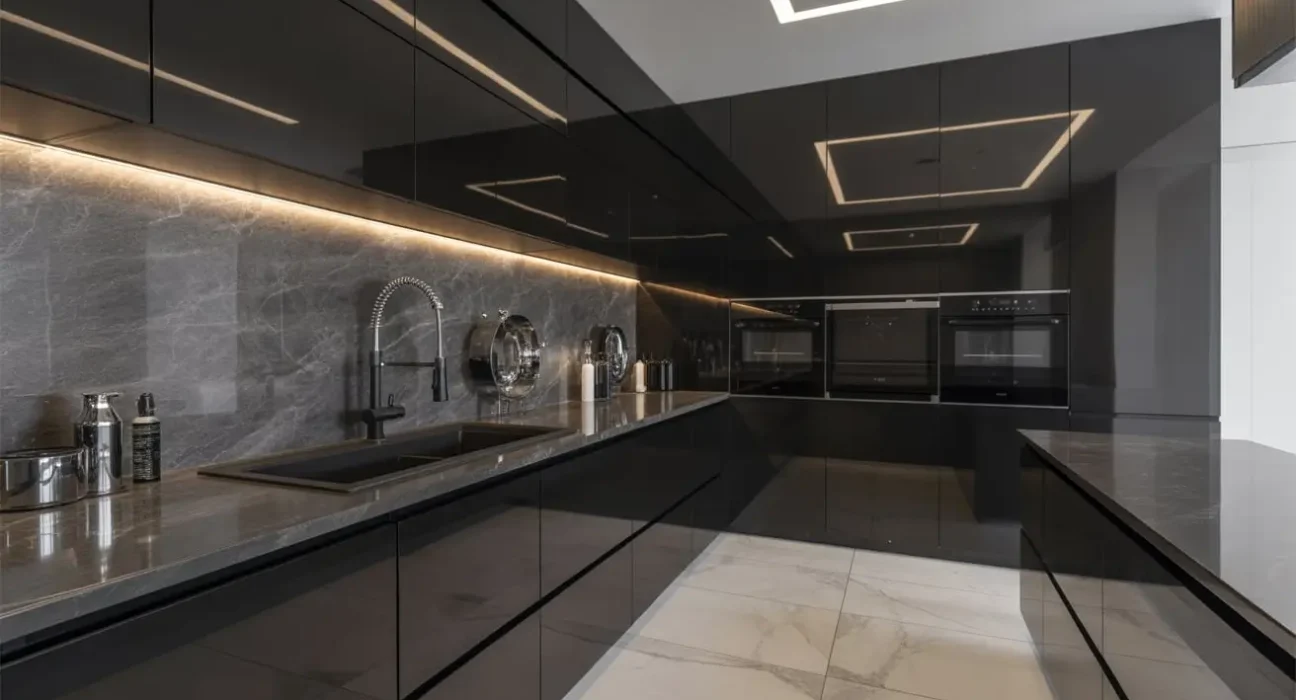 9. The Seamless Wonder: Luxury Kitchen with Black Quartz Sink