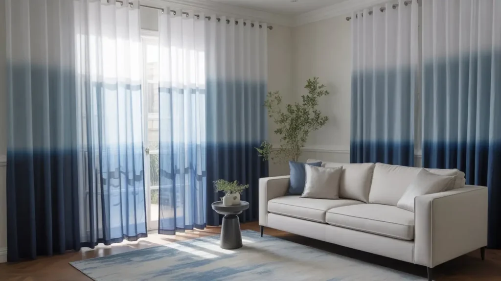 - Pull Colors from the Curtain: Decorate the rest of the room using the shades found in your ombre curtain. For example, if it goes from navy to white, use a navy sofa, light blue pillows, and white accents.