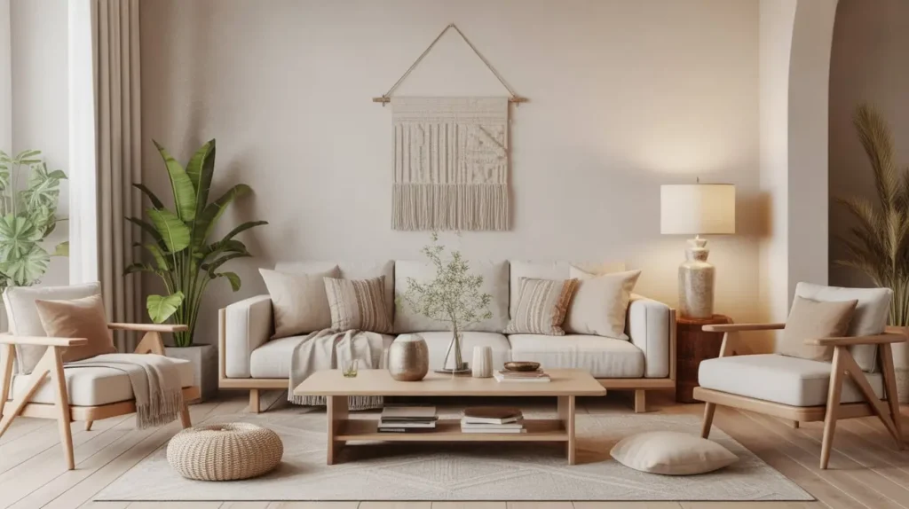 It’s cleaner than traditional boho but cozier than stark Scandinavian minimalism. It’s characterized by a neutral color palette, natural materials, and an emphasis on comfort and “hygge” (the Danish concept of coziness and contentment).
