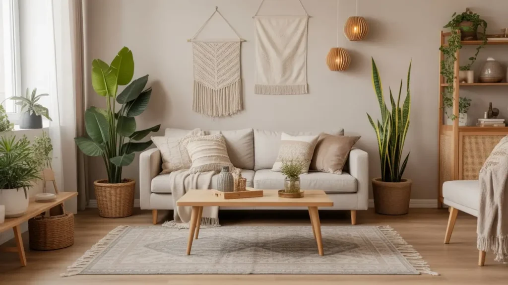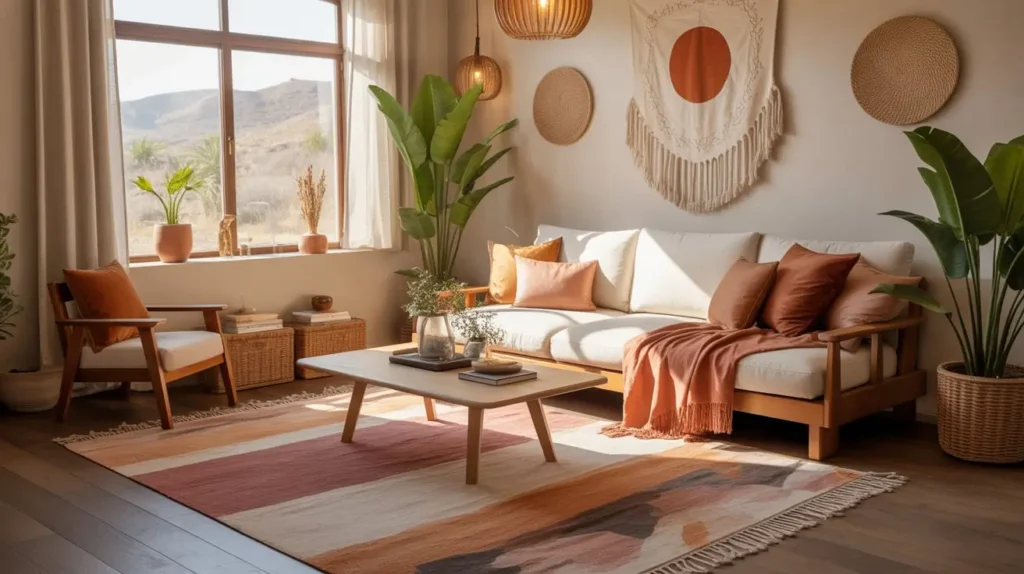 - Boho Layers: Add warmth and texture with plush rugs, an abundance of pillows, soft throws, and lots of plants.