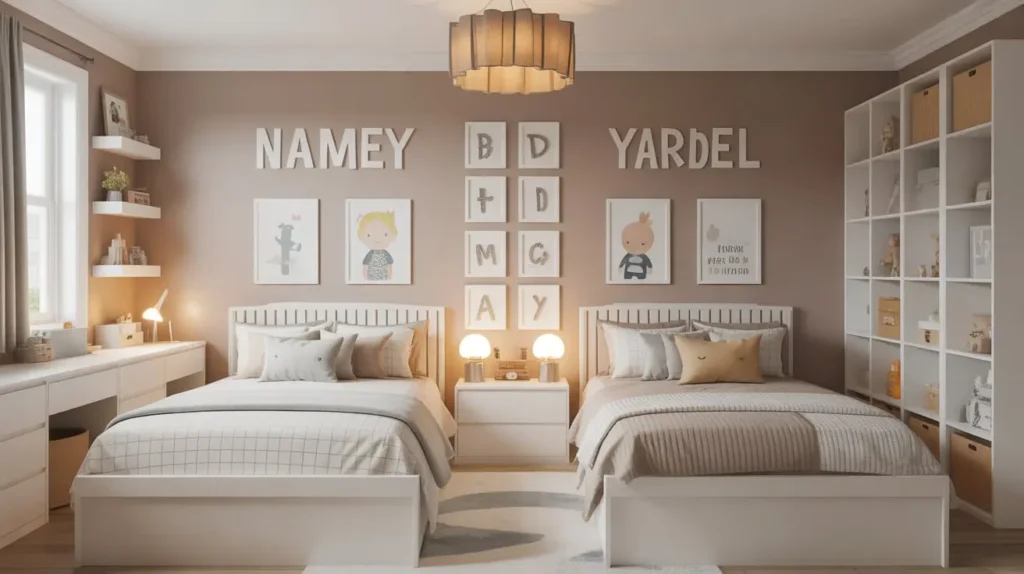 Here’s where you can really let each child’s personality shine. Personalized wall décor transforms a generic shared room into a space that reflects both occupants’ interests and tastes. The trick is maintaining visual harmony while celebrating individual differences.