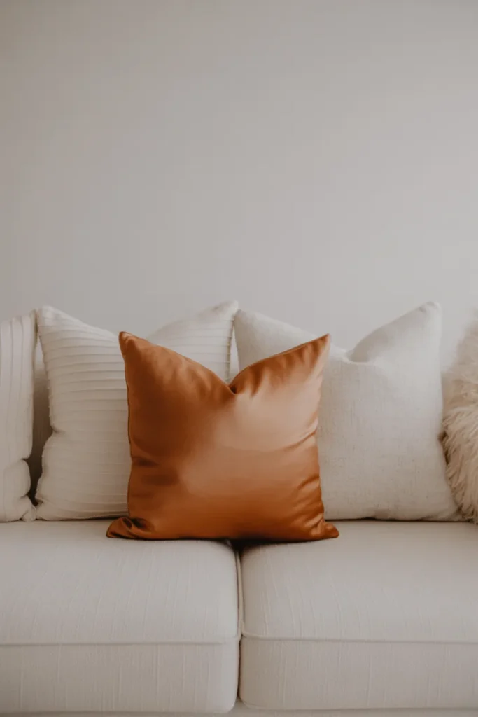 20. Neutral Base with One Bold Accent Pillow