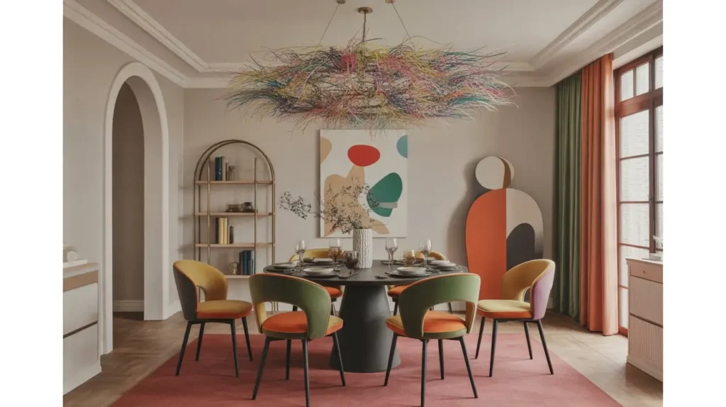 This could be a fixture made of colorful Murano glass, a sculptural piece painted in a bold primary color, or a chandelier adorned with whimsical, artistic elements. This is your chance to treat your lighting as a true piece of sculpture.