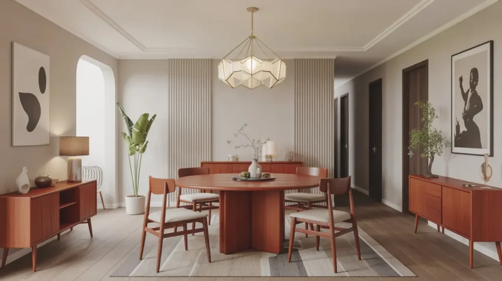 • Pairing: An MCM chandelier looks incredible over a table with tapered legs (like a classic Eames-style table). Pair it with iconic chairs of the era, like the Eames Molded Plastic Chair or the Cherner Chair.