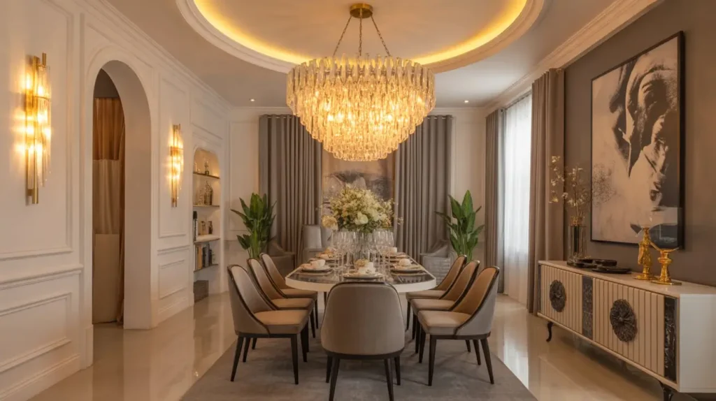 The sheer audacity of it! An oversized chandelier instantly adds a dose of drama and luxury. It fills the vertical space in a room with a high ceiling, preventing the dining area from feeling lost or adrift. I once saw a massive, multi-tiered ring chandelier in a loft, and it was so powerful it made the entire open-plan space feel intimate and defined. It’s a room-defining feature.