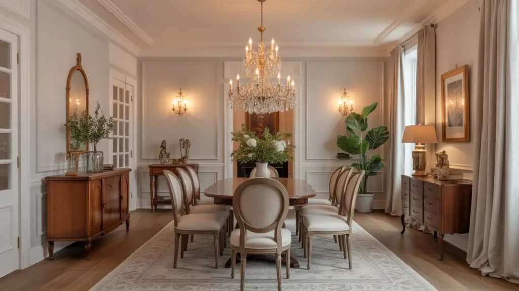 • The Right Setting: This style is a natural fit for rooms with traditional architectural details like crown molding, wainscoting, and a classic dining set.