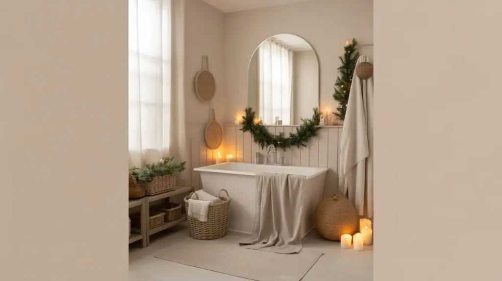 5. Cozy Neutral Christmas Bathroom