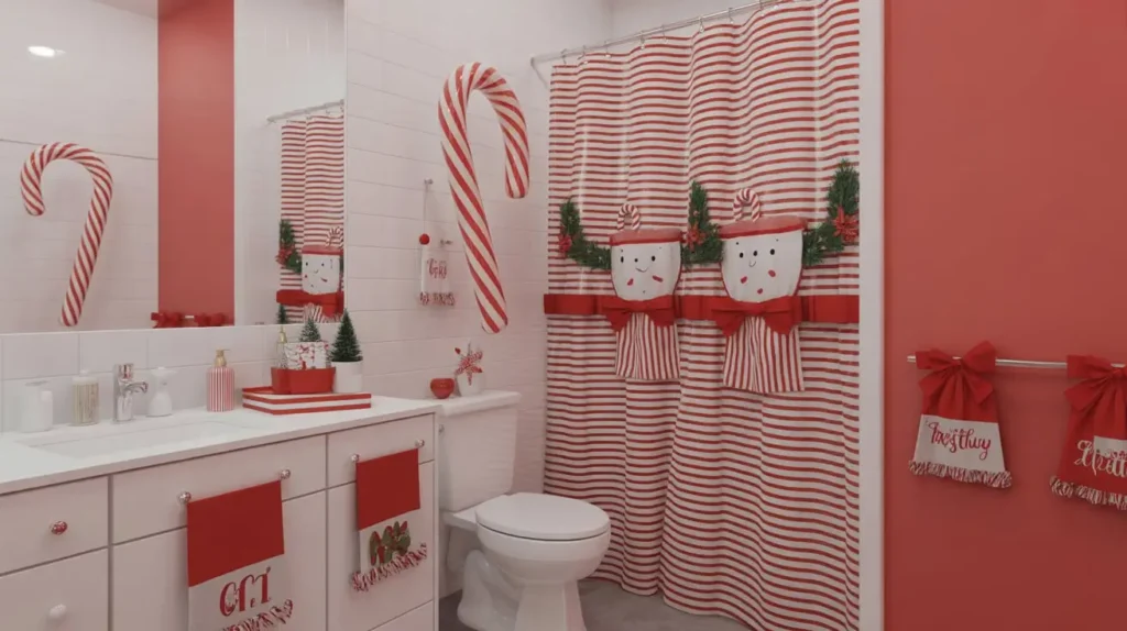 Okay, this one is for the people who want their bathroom to scream “Christmas!” loudly and proudly. It’s fun, energetic, and creates a high-impact visual. I personally find this theme energetic—it wakes you up in the morning!