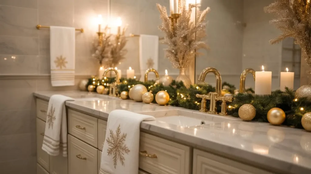 4. Elegant Gold Holiday Bathroom