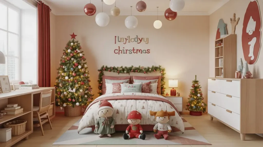 15. Whimsical Kids’ Christmas Bedroom Theme