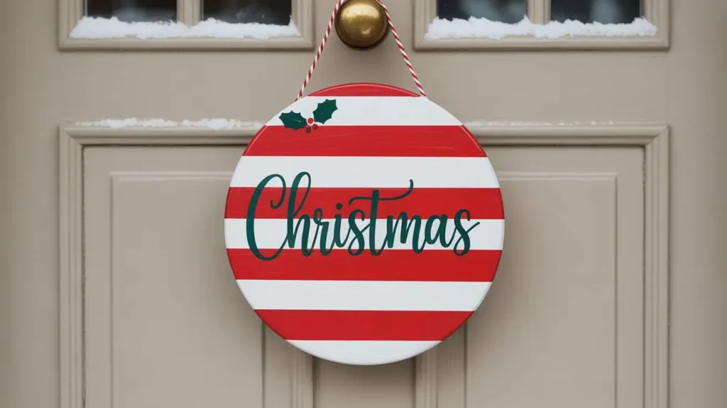 Nothing screams “Christmas!” quite like the crisp, clean lines of a red and white candy cane. This door hanger takes that iconic pattern and turns it into a modern, stylish piece of art for your door. It’s usually a flat, wooden shape—like a circle, a monogram letter, or even a fun tag shape—painted with bold, diagonal stripes.