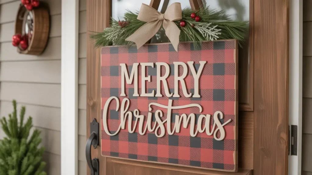 The Merry Farmhouse Plaid Door Sign is the epitome of cozy Christmas style. It feels warm and inviting without being overly sentimental. The plaid pattern—whether it’s a red tartan or a black-and-white buffalo check—adds a layer of texture and tradition. It’s like a warm flannel shirt for your front door.