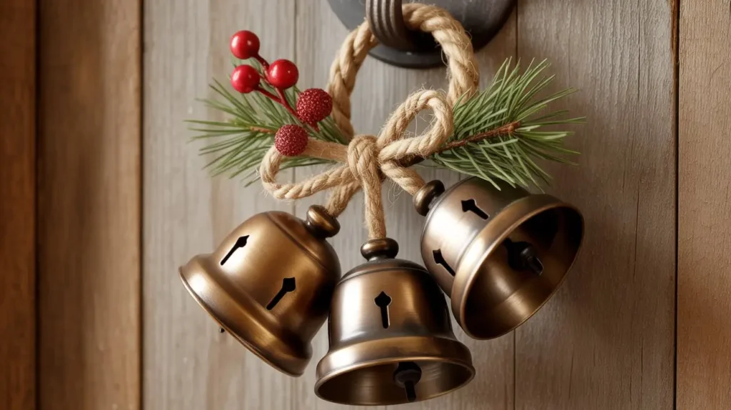 - What you’ll need: A handful of oversized jingle bells (I prefer the rusty or antiqued-finish ones), a thick piece of burlap ribbon or jute rope, and maybe a sprig of faux pine or a few holly berries.