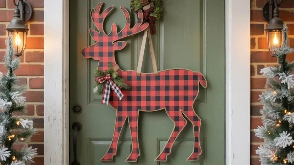 This hanger combines two of the most popular trends in holiday decor: buffalo check and the classic reindeer silhouette. It’s typically a wooden cutout of a reindeer head (often in profile), with the body filled in with a black-and-white or red-and-black buffalo check pattern. It’s the perfect marriage of rustic charm and modern graphic design.