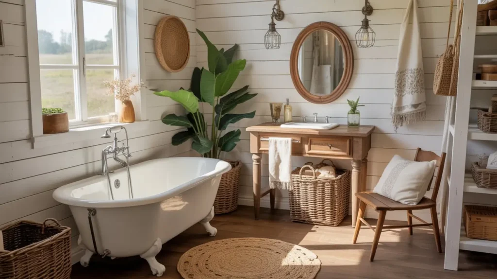 What I love most about this style is its forgiving nature. Farmhouse bathrooms embrace imperfection—distressed finishes, vintage finds, and mixed materials all add to the charm. So if your budget doesn’t allow for a full renovation, you can layer in farmhouse elements over time.