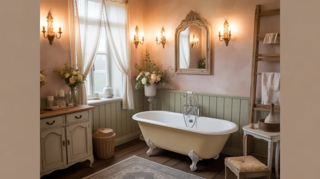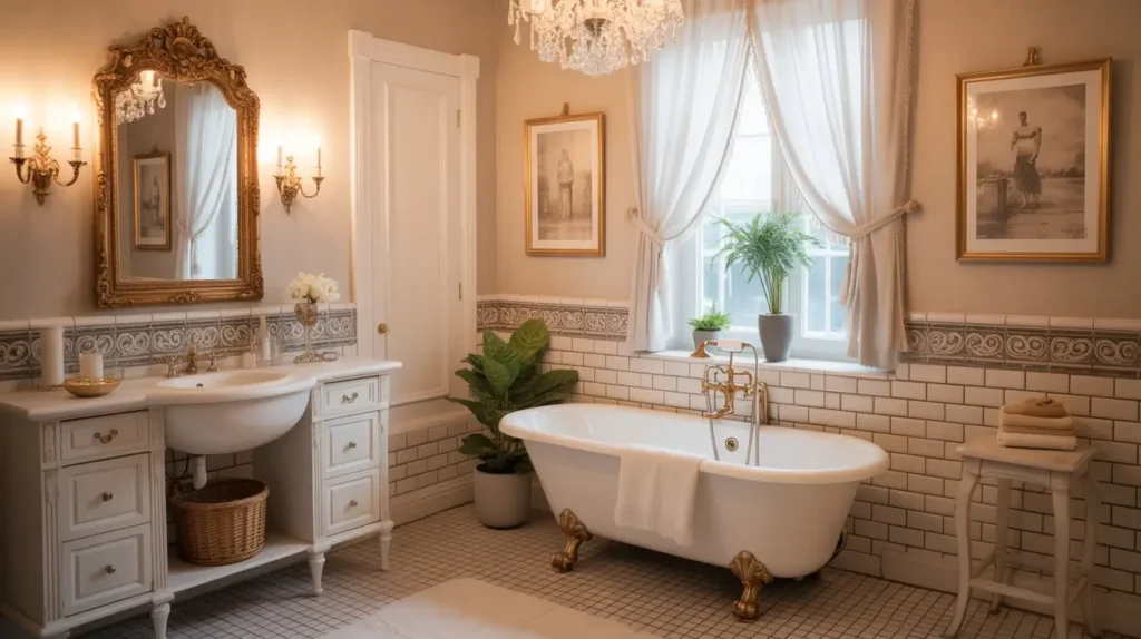 This style rewards quality over quantity. Choose fewer, better pieces rather than filling every corner. A beautifully crafted clawfoot tub, an antique vanity, and properly proportioned fixtures create more impact than a room crowded with mediocre elements.