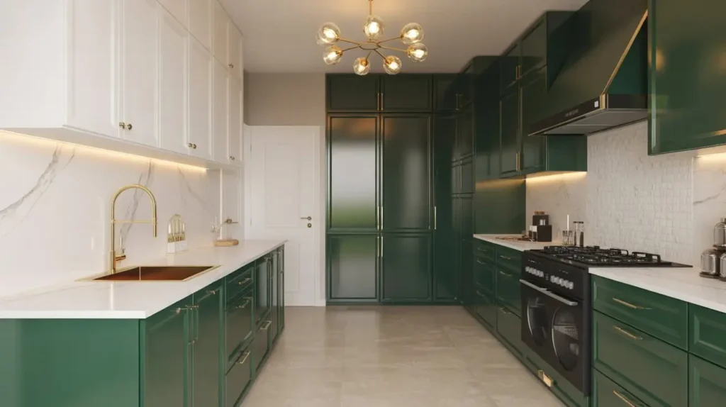 Ready for something seriously moody? A modern dark green and black kitchen is basically the Batman of kitchen design – dark, sleek, and undeniably cool.