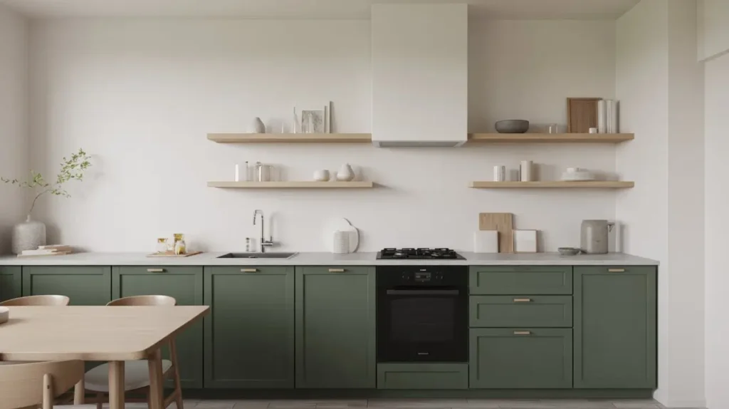 Minimalist Dark Green Scandinavian Kitchen
