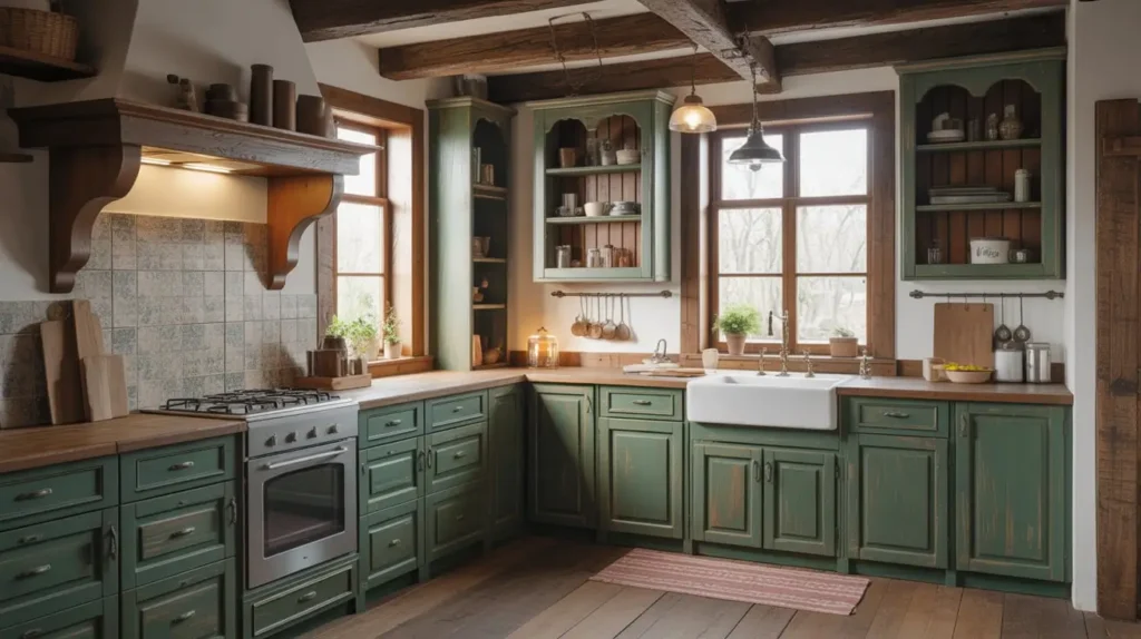 Vintage Dark Green Farmhouse Kitchen