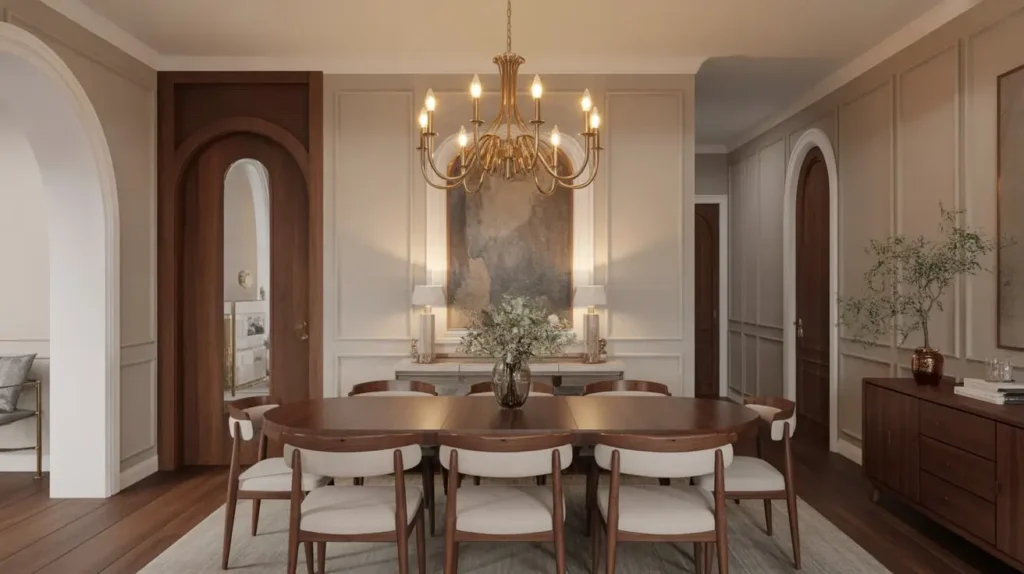 Instead of a single overhead source, a pair of beautiful sconces flanking a piece of art or a mirror creates layers of light. This approach produces a soft, ambient glow that is much more akin to candlelight. It feels more like a high-end restaurant or a cozy lounge than a typical dining room. It’s sophisticated and unexpected.